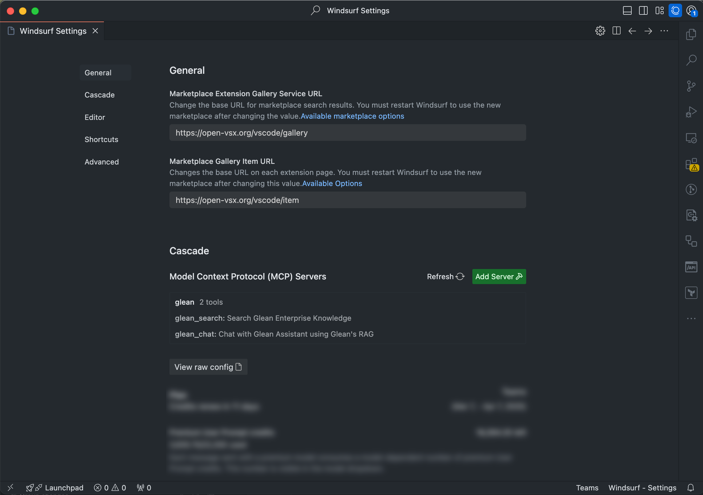 - Under "Cascade / Model Context Protocol (MCP) Servers"